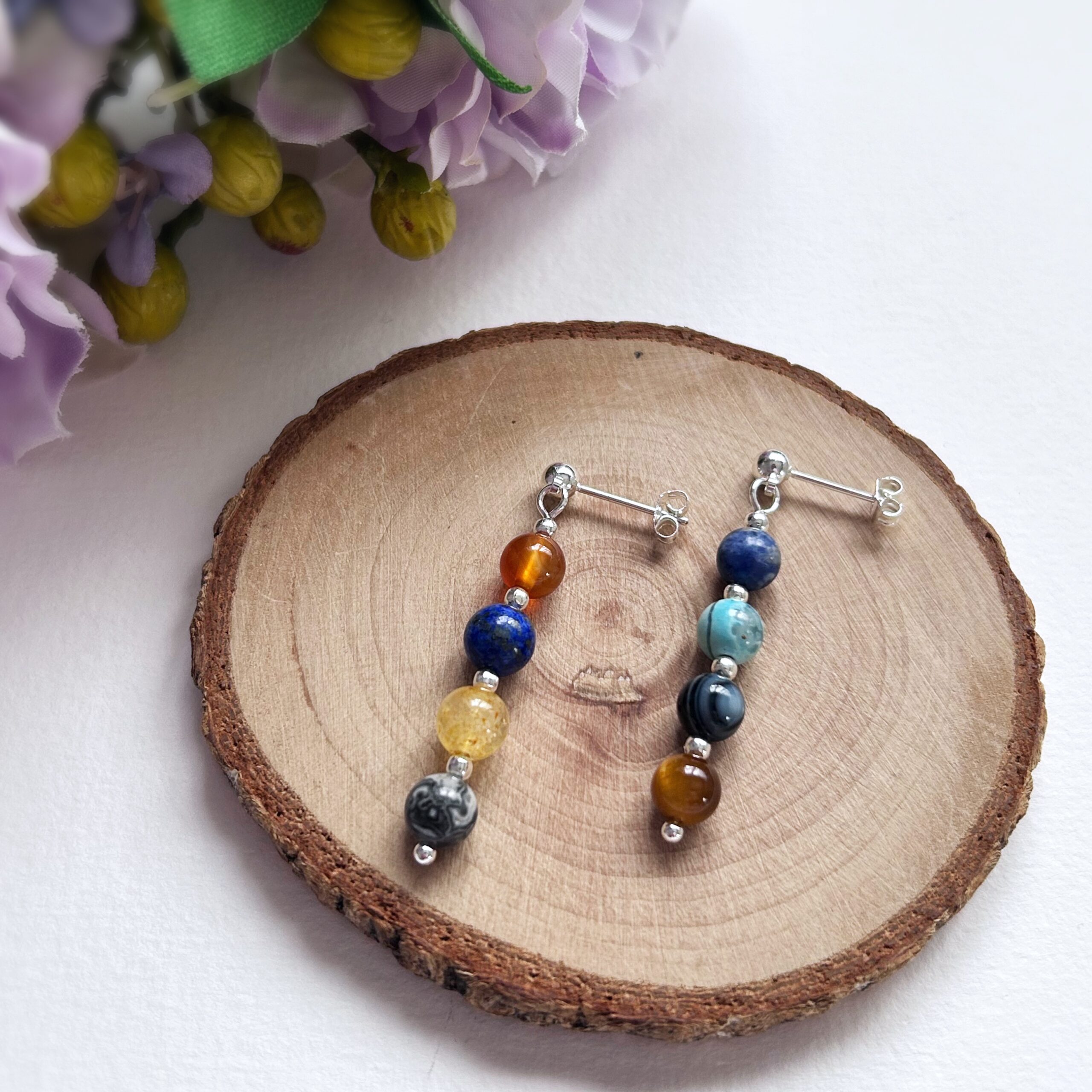 Take the solar system with you, wherever you go, in a lightweight and comfortable way with The Planets Beaded Gemstone Stud Drop Earrings.